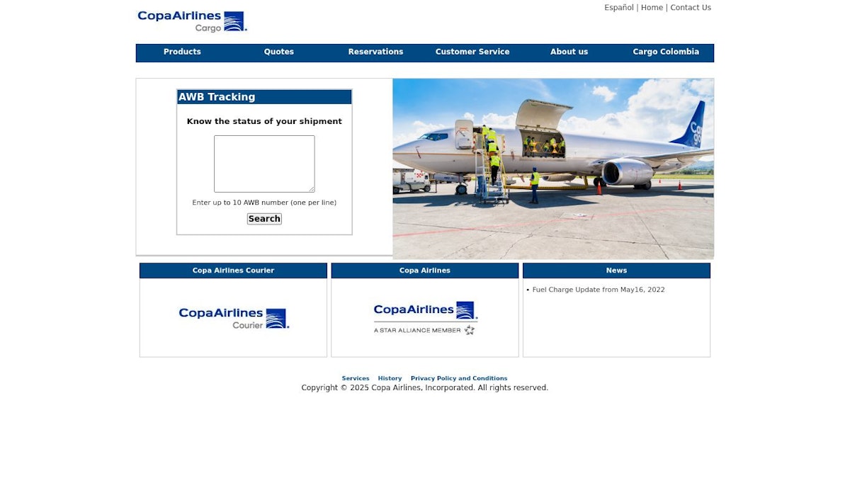 Copa Cargo is a service that allows users to track the status of their shipments efficiently.
