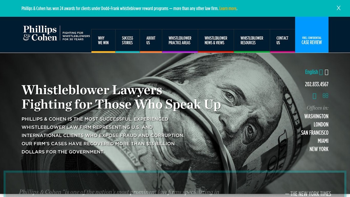 Phillips & Cohen is a leading whistleblower law firm that has successfully recovered over $13 billion for clients exposing fraud and corruption.