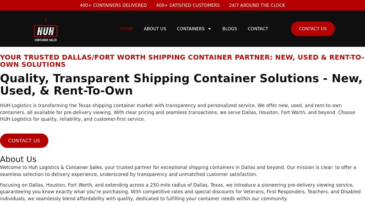 HUH Logistics offers a transparent selection of shipping containers, including new, used, and rent-to-own options with pre-delivery viewing available.
