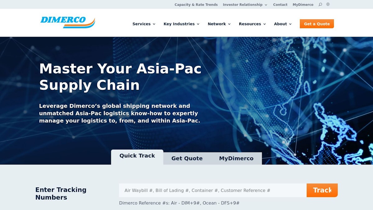 Dimerco provides global logistics services including air freight, sea freight, and contract logistics.