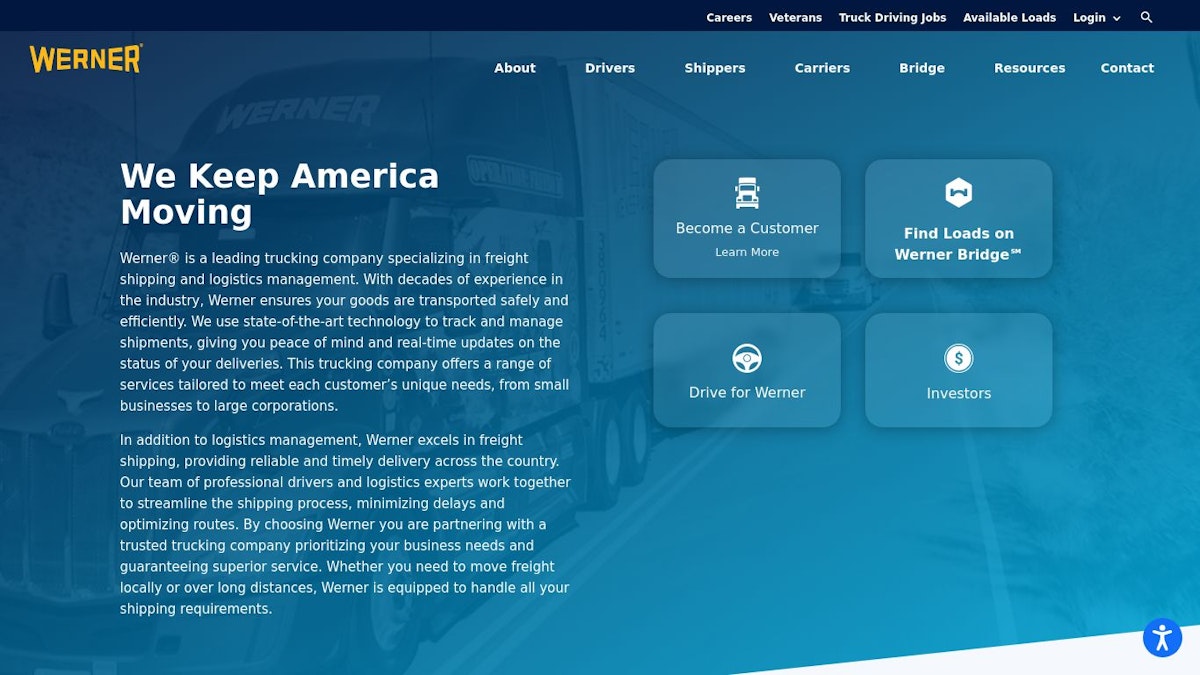 Werner is a leading trucking company providing logistics and freight shipping solutions in the USA and Mexico.
