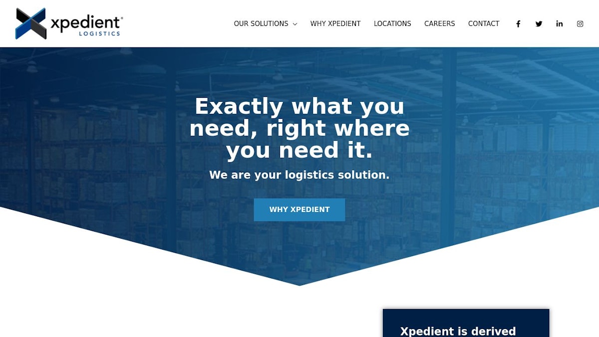 Xpedient is a full-service third-party logistics provider, specializing in warehousing, transportation, and supply chain management.