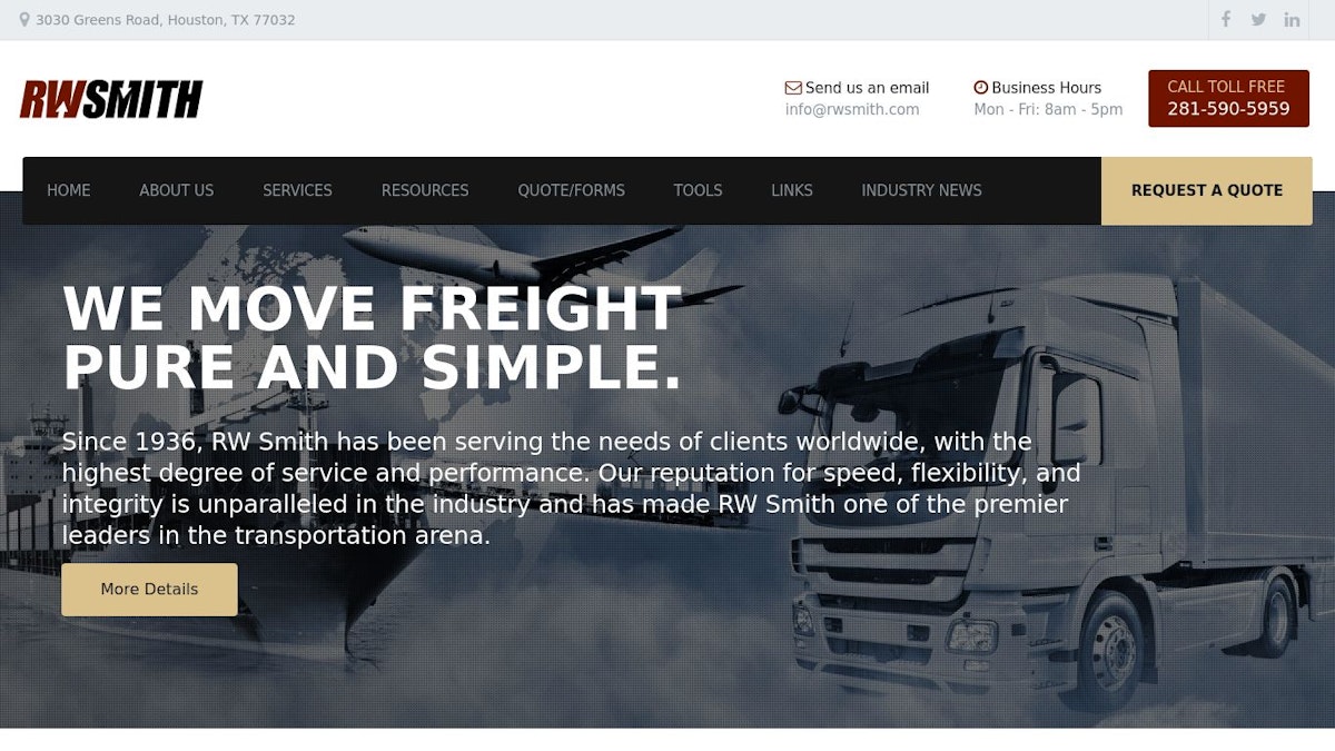 RW Smith is a transportation company specializing in customs brokering and freight forwarding services worldwide.