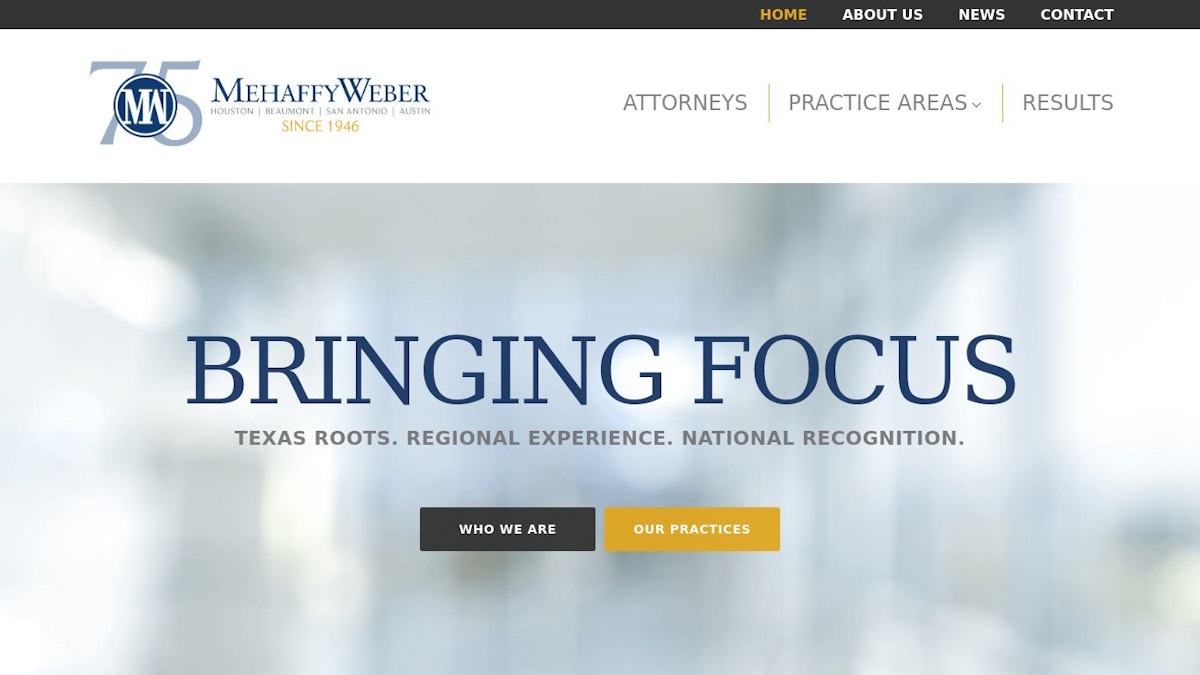 MehaffyWeber is a litigation firm founded in 1946, recognized nationally for its trial experience and litigation excellence.