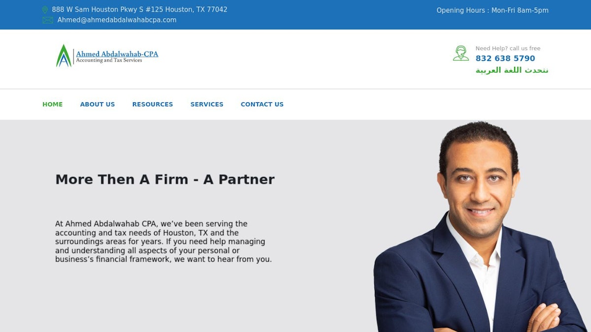 Ahmed Abdalwahab CPA provides comprehensive accounting, tax consulting, and financial services tailored to individuals and businesses.
